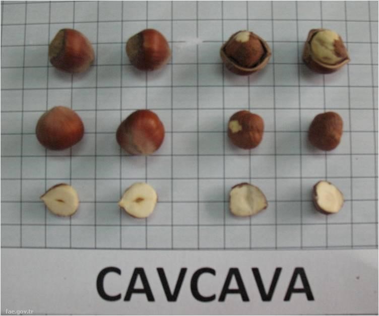Cavcava Fındığı: Yetiştirilme alanı çok az bulunan bu fındık çeşidinin kabuğu kahverenkli, ortalama 0.9-1 mm.kalınlıktadır. Tablası dışa çıkıntılı olan bu çeşidin kabuklu meyvesi ortalama 18.46 mm. uzunluk ve 17.33 mm. genişliktedir. İç meyve üzerinde kalınca ve kahverenkli zar bulunmaktadır. Meyve eti fildişi renkte ve göbek boşluğu büyükçedir. Randımanı % 52-54 ve yağ oranı %63-66'dır. 700-780 adet kabuklu fındığı 1kg. gelmektedir. Zurfları meyve boyunun 2 katı büyüklükte ve çoğunlukla 3 ve 4'lü çotanak oluşturmaktadır.