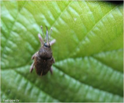 Fındık kurdu ergini kül renginde, bazen sarımsı veya açık kahverenginde olup; başı öne doğru uzayarak hortum şeklini almıştır (Şekil1). Beyaz renkli, tombul, kıvrık ve bacaksız olan larvalar olgunlaştığında 10-12mm boyuna erişebilmektedir.